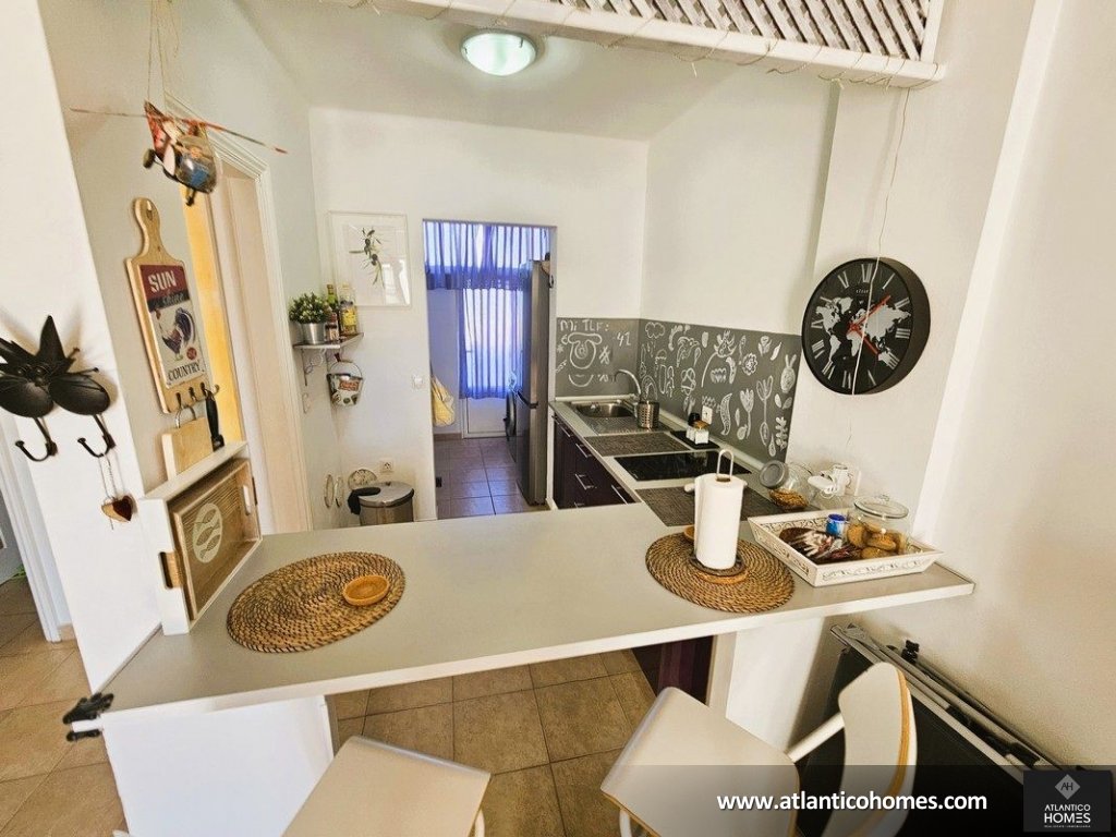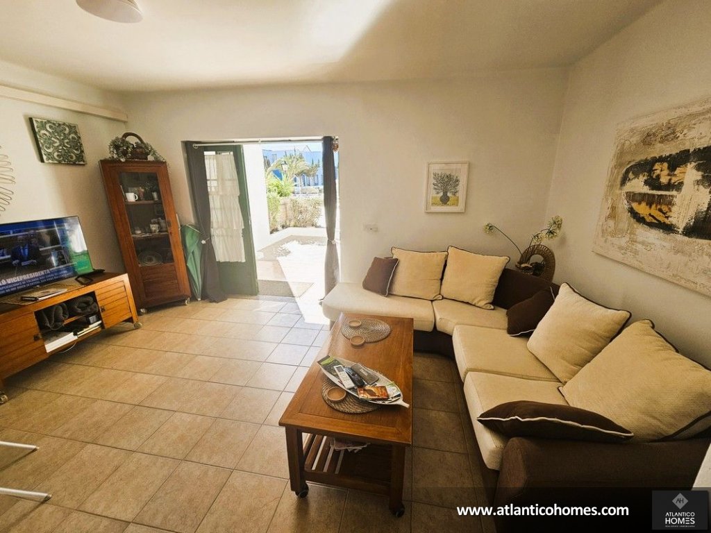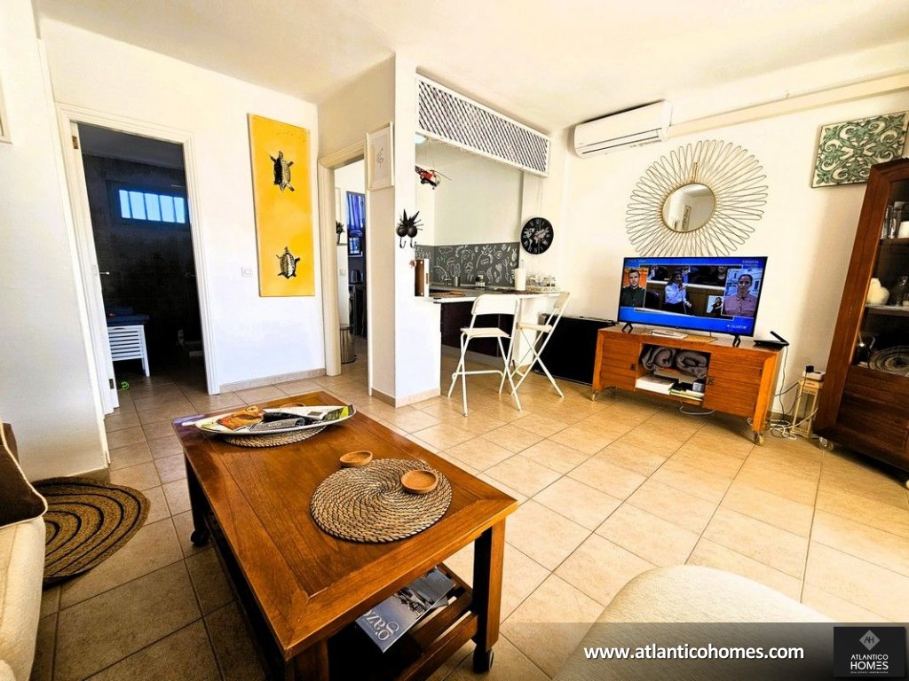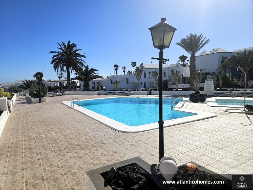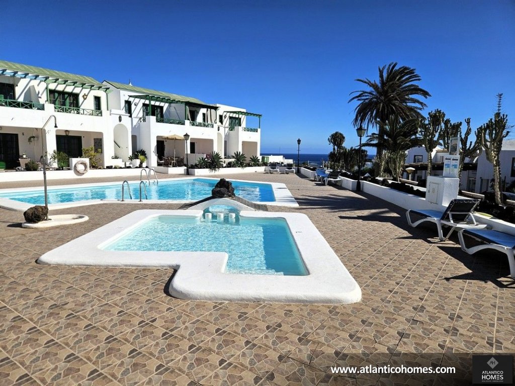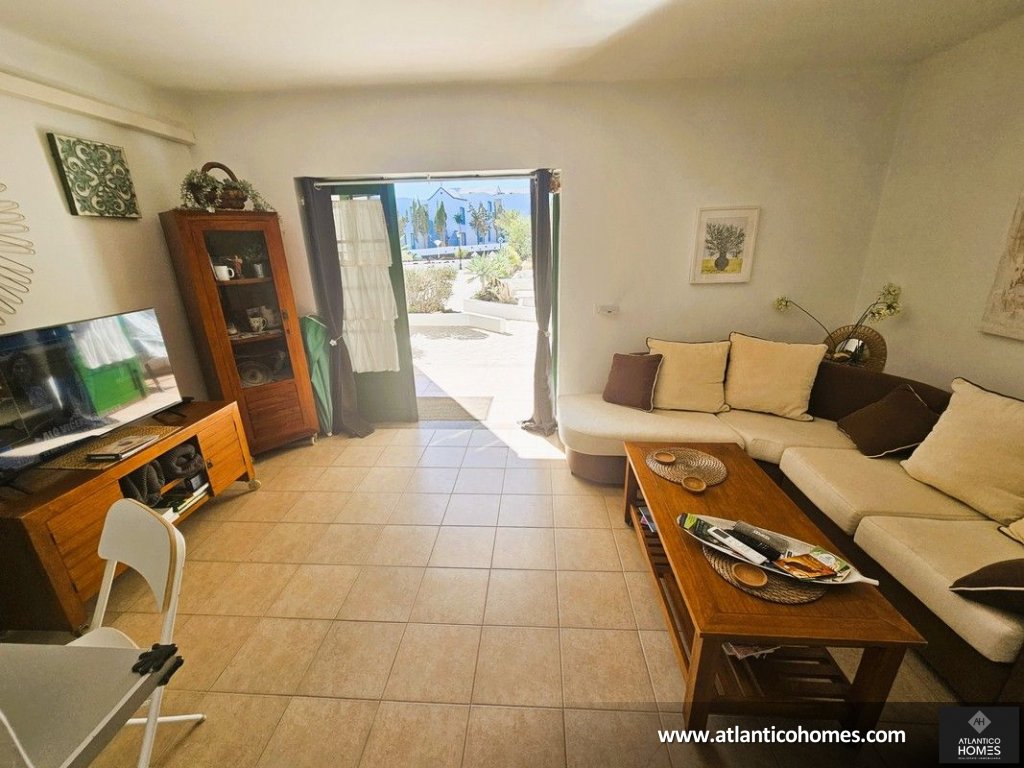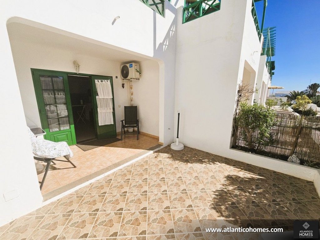Atlantico Homes proudly presents a stunning ground floor one-bedroom apartment for sale in a tranquil complex in Matagorda. This apartment is impeccably maintained and features a double bedroom, a modern bathroom, a fully equipped kitchen with a utility room, and a spacious lounge with air conditioning that opens onto the front terrace, providing direct access to the pool. At the rear, the apartment boasts approximately 40m² of terracing, complete with a BBQ area and breathtaking sea views extending to Arrecife. Conveniently located just a short walk from Matagorda's beautiful golden beaches, the complex offers a communal swimming pool and a dedicated parking area for owners.