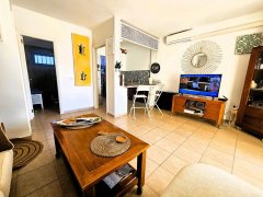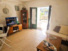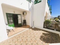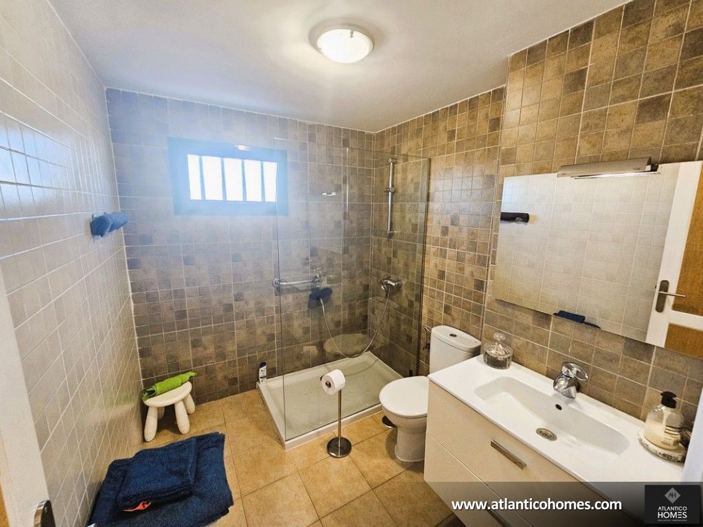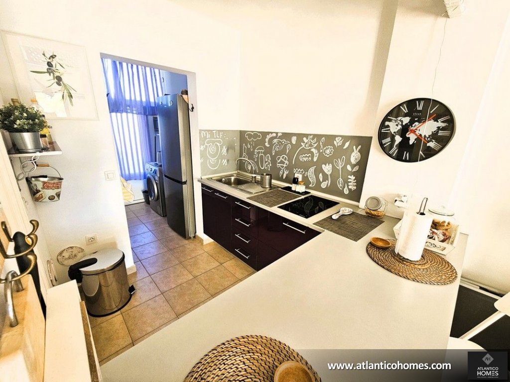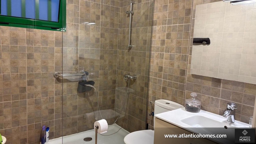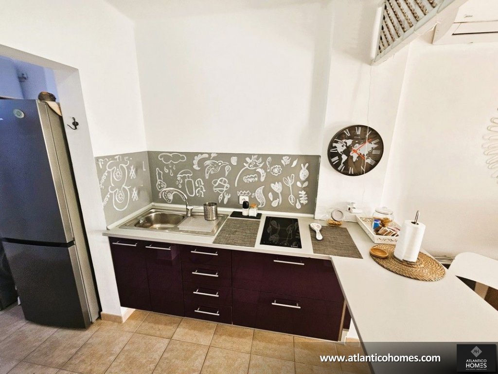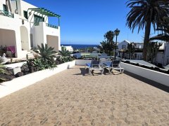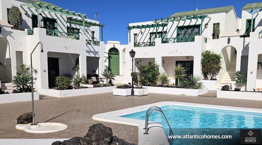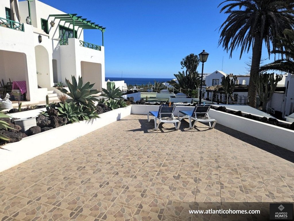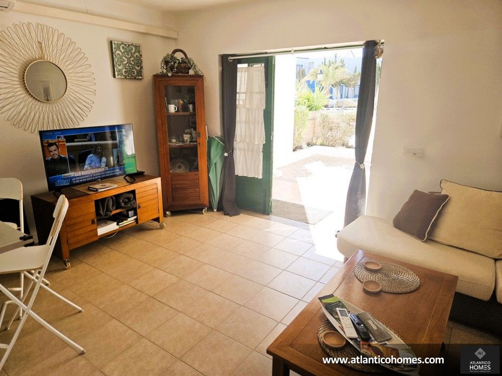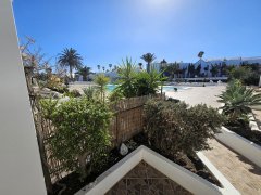 Atlantico Homes proudly presents a stunning ground floor one-bedroom apartment for sale in a tranquil complex in Matagorda. This apartment is impeccably maintained and features a double bedroom, a modern bathroom, a fully equipped kitchen with a utility room, and a spacious lounge with air conditioning that opens onto the front terrace, providing direct access to the pool. At the rear, the apartment boasts approximately 40m² of terracing, complete with a BBQ area and breathtaking sea views extending to Arrecife. Conveniently located just a short walk from Matagorda's beautiful golden beaches, the complex offers a communal swimming pool and a dedicated parking area for owners.