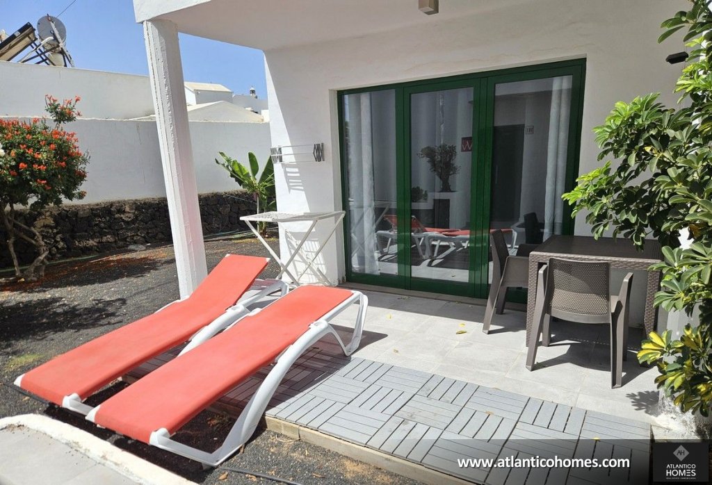 Exclusive to Atlantico Homes: Discover your dream home in a popular gated community in Puerto del Carmen. This ground-floor apartment is perfect for peaceful island living or a relaxing holiday getaway. As you enter, you will see a beautifully furnished space filled with natural light. The open-plan lounge and dining area lead directly to your terrace, ideal for enjoying the morning sun. The apartment features a fully equipped kitchen, a spacious double bedroom with built-in wardrobes, and a good-sized bathroom with a walk-in shower. This complex benefits from a large communal pool and lots of sunbathing terracing. The apartment is located just a short walk from the beach, shops, restaurants, and local amenities. Whether you are in pursuit of a serene getaway or a strategic investment opportunity, this apartment presents an exceptional lifestyle choice. Don’t let this remarkable opportunity pass you by.